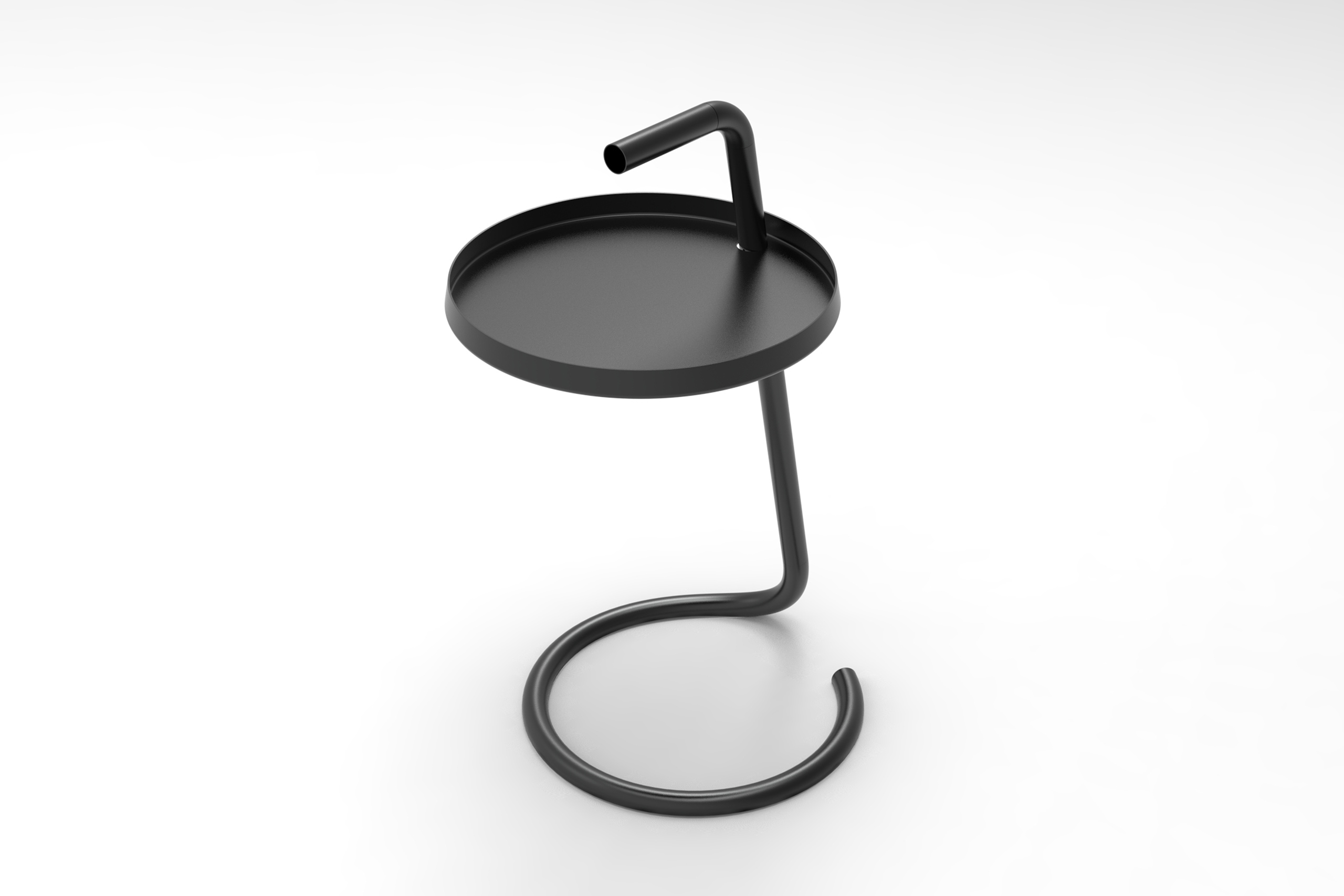 A side table that in its design would try to reduce extremely and still offer something new. Something new not only for users but also for manufacturers. »Parapluie« is for the designer an attempt to know better simple design. Less is better but not simpler. The body of the side table is made only with bending and by 13cm radius in raw steel creates enormous stability in its purpose. Its design wants to be fun and interesting to arouse curiosity of the user. The color design plays a strong role in this product, because the designer wants to create a part of reduction by the color. The product tries to fit into the furniture world with several parts. In the design process, easy transportation was constantly thought of. It should be a problem solver and avoid many costs.